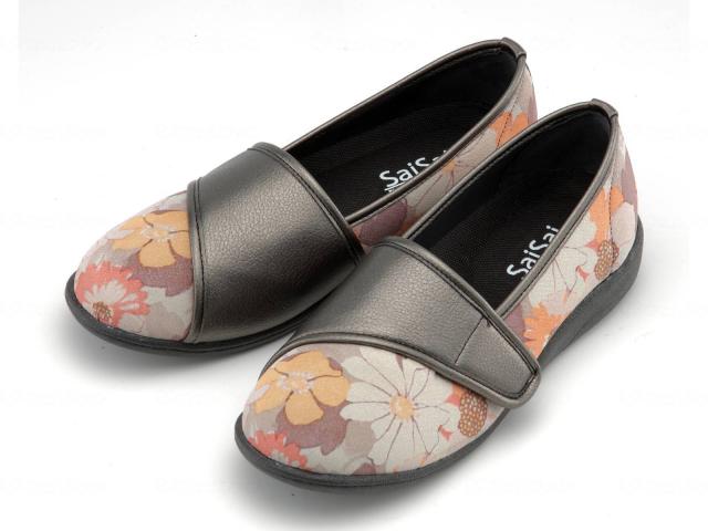 室内 施設 病院 片足 両足 介護シューズ SaiSai フラワープリント W940 フルールオレンジ 23.0