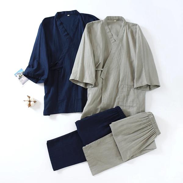 男性用日本の着物パジャマ、男性のレースアップホームウェア、伝統的なハリキお守り、綿のナイトガウン、家庭服、春と秋