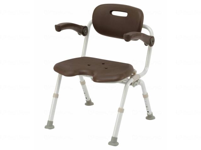■安心・快適やわらかクッション・冷たさを感じにくく、すべりにくい素材・水切れもよく、着脱も簡単・ひじかけ裏までやわらかく、浴槽移乗時に誤ってひじをぶつけても安心・ゆったり背もたれと広めの座奥行で脚上げ動作も快適■かがまずにスペース確保・ワンタッチおりたたみ機能・おりたたむときに、腰や脚に負担がある場合は・・・かがまずたためるワンタッチタイプがおすすめ背もたれレバーを握るだけ・チェアの後ろ脚起点でもたためるので、前方に広いスペースを確保可能・介助者にとっても便利で安2型座面○防かびタイプ※クッション・脚ゴムなどかびが根付くと除去できない部分に防かび加工しています。プラスチックや金属部分は、かびが生えても拭き取れるので防かび加工はしていません。※防かび加工は、かびを死滅させるものではありません。使用条件によってはかびが発生することがあります。○嗜好性、視認性にあわせて選べるカラーシックで視認性のよい※モカブラウン※白背景に対して高コントラストで見やすい色です。●フィッティング性の改善・座面高さ上限値を46cmにアップ