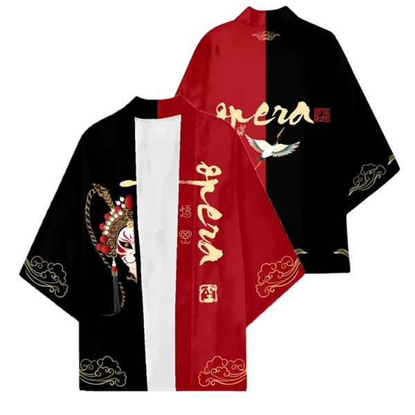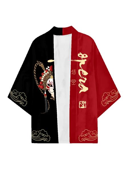 男性用,着物のテーマ,日本のコートの変装,赤,黒,雲のマスク,プリントされたマスク,さまざまな色のブロック,伝統的