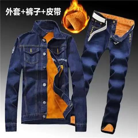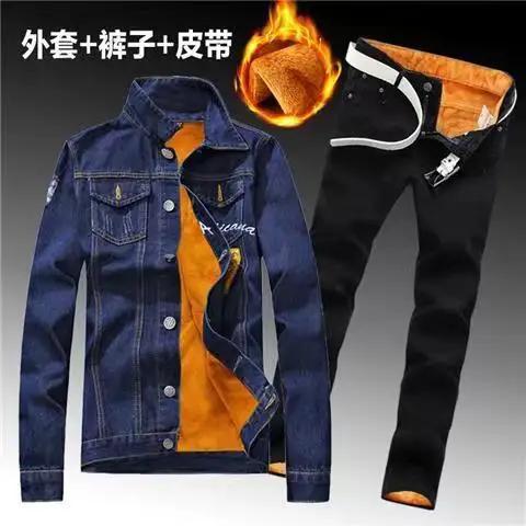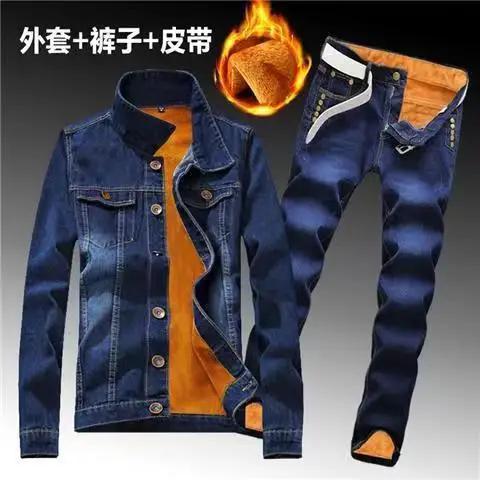 メンズデニムスーツセット,カーゴセット,厚手で暖かい,スリムフィット,フリース裏地,カウボーイボディジャケット,冬