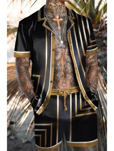 クラシックなストライプパターンのメンズシャツとショーツ,レトロスタイル,快適で十分な,カスタムデザイン,トレンディ,2023