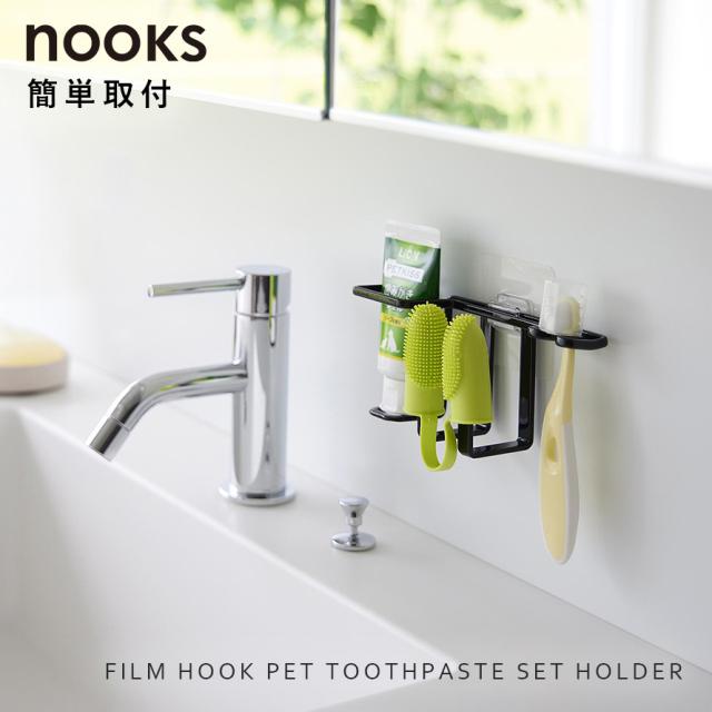 フィルムフックペット用歯磨きセットホルダー ヌークス 山崎実業 nooks 歯ブラシホルダー 洗面台 収納 壁掛け 歯ブラシ ペット ペット用品 おしゃれ モノトーン ホワイト ブラック 5308 5309