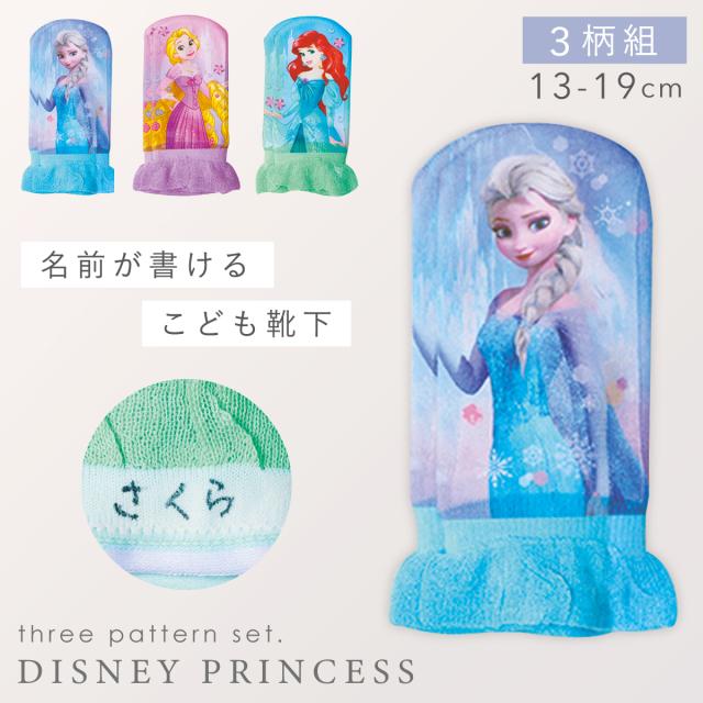 ディズニープリンセス 靴下 子ども キッズ 女の子 3柄組 13-19cm ディズニー プリンセス ラプンツェル エルサ アリエル キャラクターソックス フリル 名前が書ける ディズニープリンセスリアルプリント柄ソックス メール便対応