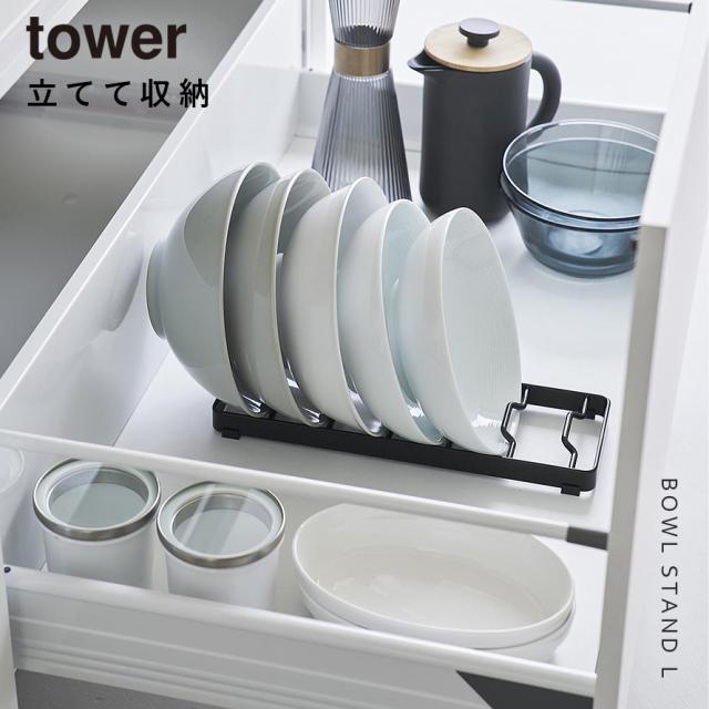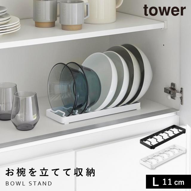お椀スタンド タワー L 山崎実業 tower おしゃれ 食器 ラック ディッシュラック お椀 スタンド 立てて収納 食器棚 モノトーン ホワイト ブラック モノトーン ホワイト ブラック 1373 1374