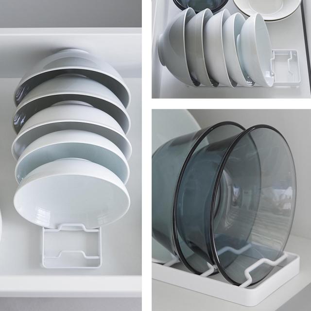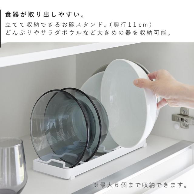 食器を取り出しやすいように立てて収納できる食器シリーズ。お椀を立てて収納できるスタンド(奥行11cm)Lサイズです。