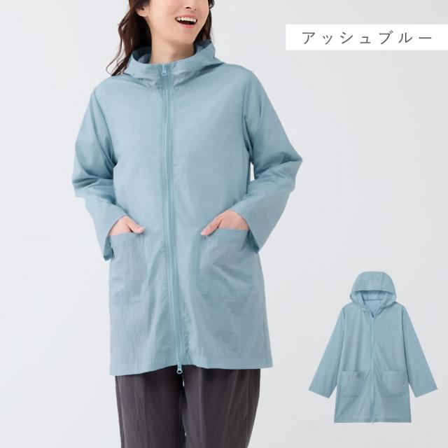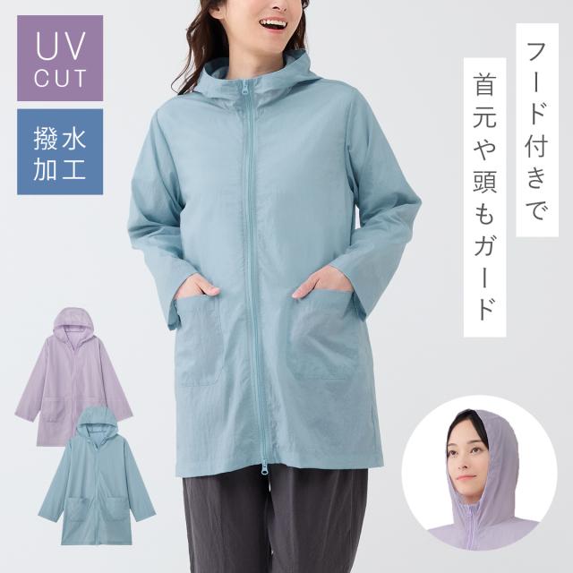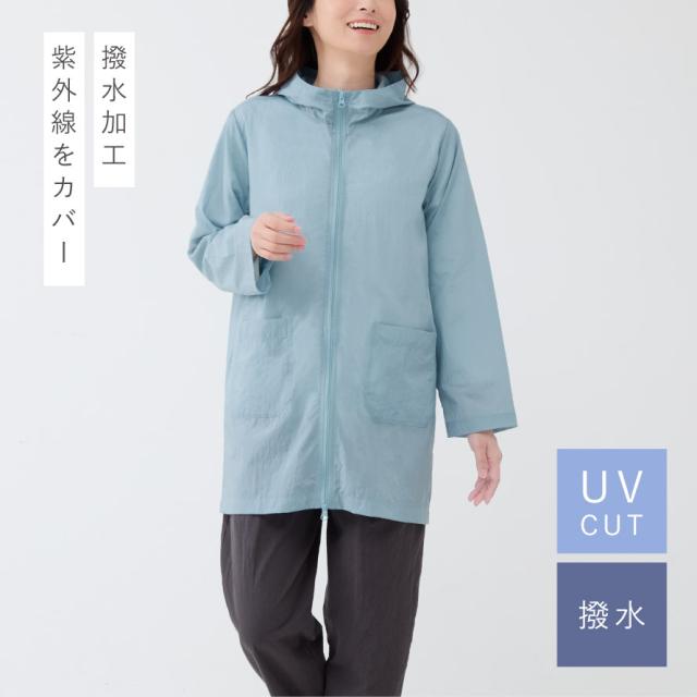 撥水パーカー レディース UVパーカー フード付きパーカー ロングパーカー 首元 日焼け対策 日焼け防止 自転車 春 夏 UVカット 花粉対策 薄手 軽量 花粉が付きにくい アウター 軽く羽織れる撥水ジャケット ダブルファスナー 50代 60代 70代 メール便対応
