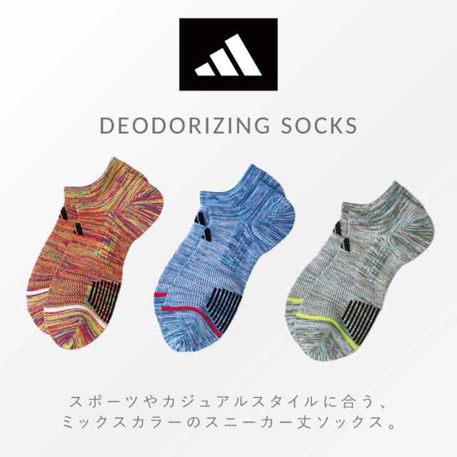 消臭機能がついたスニーカー丈のアディダスソックス。嬉しい消臭機能付き。汗をかいたりムレやすいスポーツや学校にもおすすめ。