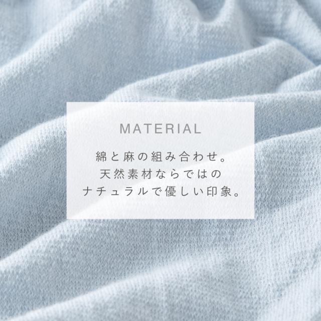 綿と麻の組み合わせにより、天然素材ならではのナチュラルで優しい印象。薄手でふんわり軽く、春夏におすすめの素材感。