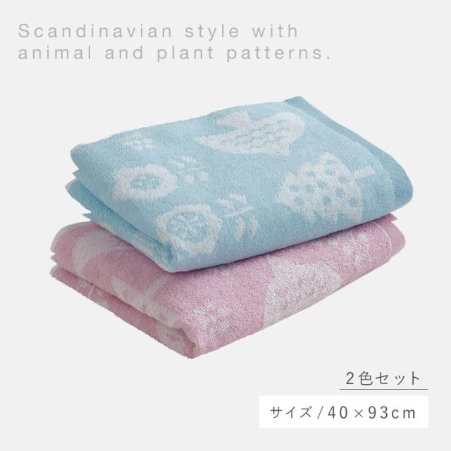 ミニバスタオル 小さめ 今治 北欧 かわいい 2色組 40×93cm 今治タオル 日本製 綿100% 国産 乾きやすい ふわふわ おしゃれ 今治タオルブランド 【2色組】 ミニバスタオル バードツリー