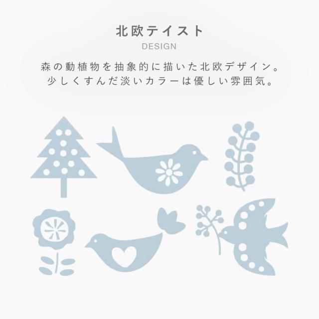 森の動植物を抽象的でシンプルに描いた北欧テイストのデザイン。少しくすんだ明度の高いベビーピンク&ブルーの優しい色合い。清涼感がありキッチンやバスルームのインテリアにも馴染みます。