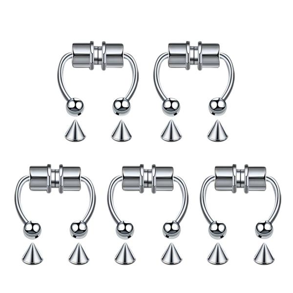 5 個ステンレス鋼マグネット偽鼻リングフープ偽ピアスフープセプタムリング女性のファッションゴシックロックボディジュエリーギフト