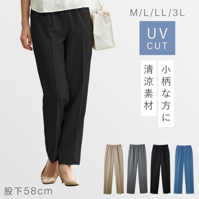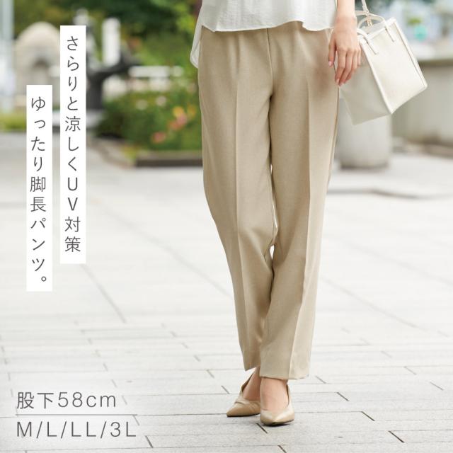 パンツ レディース 夏 涼しい ウエストゴム uvカット 紫外線カット 日本製 股上深め ボトムス ミセス きれいめ UVカット肌さら涼感パンツ 股下58cm M L LL 3L 大きいサイズ ゆったり 50代 60代 70代 婦人 ミセスファッション メール便対応