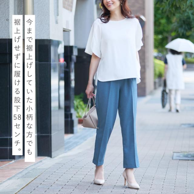 今まで裾上げしていた小柄な方でも、そのまま履ける股下58cm。パンツラインがキレイに見えるシルエットに仕上げました。