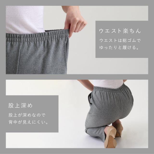 ウエスト総ゴムでゆったりと履けて着脱もしやすい。