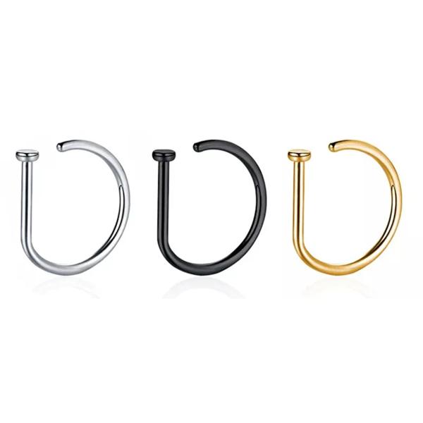 男性と女性のためのステンレス鋼の偽のピアスリング、d字型、ノーズリング、クリップオンジュエリー、316l、1個、3個、5個