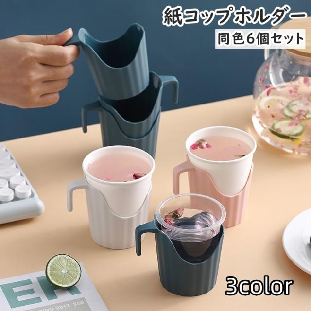 紙コップホルダー 同色6個セット 持ち手付き 使い捨て紙コップホルダー 卓上 容器 シンプル ピクニック キャンプ バーベキュー