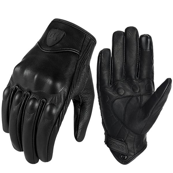 男性用ブラックレザーバイクグローブ,ビンテージバイクレーシンググローブ,通気性滑り止め,レトロなモーターサイクルバイカーサイクリンググローブ,夏