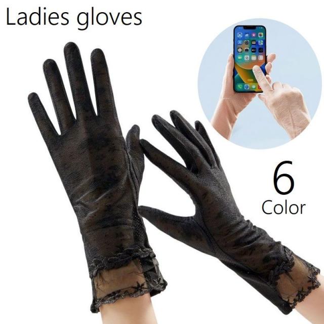 手袋 レディース 女性 婦人 日焼け対策 紫外線対策 レース シースルー 透け感 メッシュ 通気性 滑り止め 花柄 フラワー 上