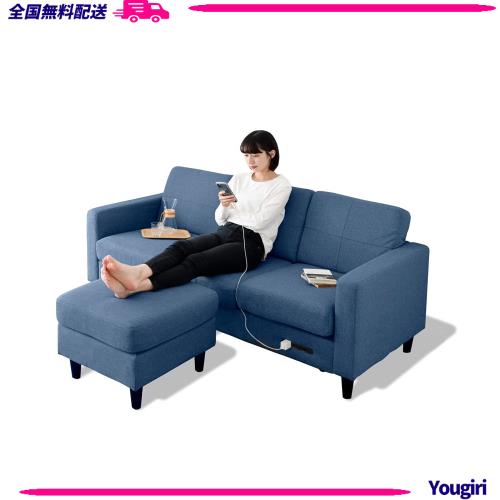[山善] ソファー 3人掛け USBポート・2口コンセント付き ロボット掃除機が通れる レイアウト自由 幅184? オットマン カウチソファー か