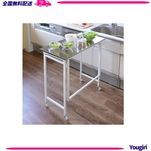 [山善] テーブル キッチンカウンター 折りたたみ 組立カンタン (ステンレス天板耐熱温度 : 200度) 幅80×奥行40×高さ85cm テーブル ホワ