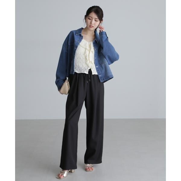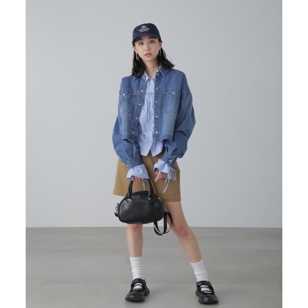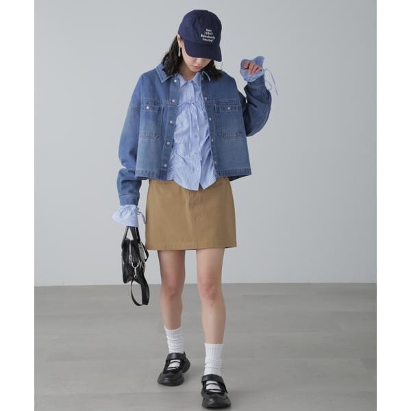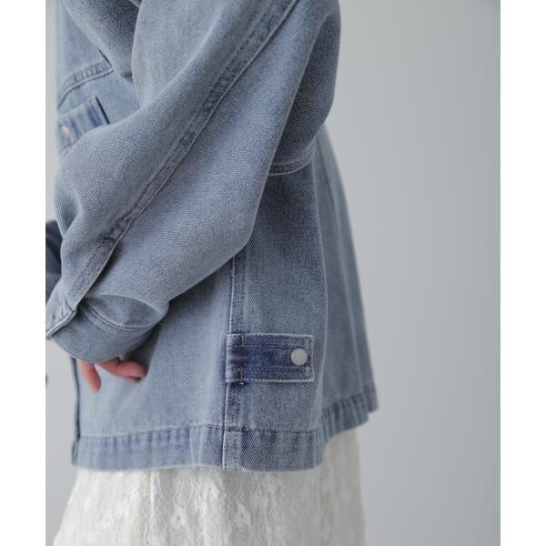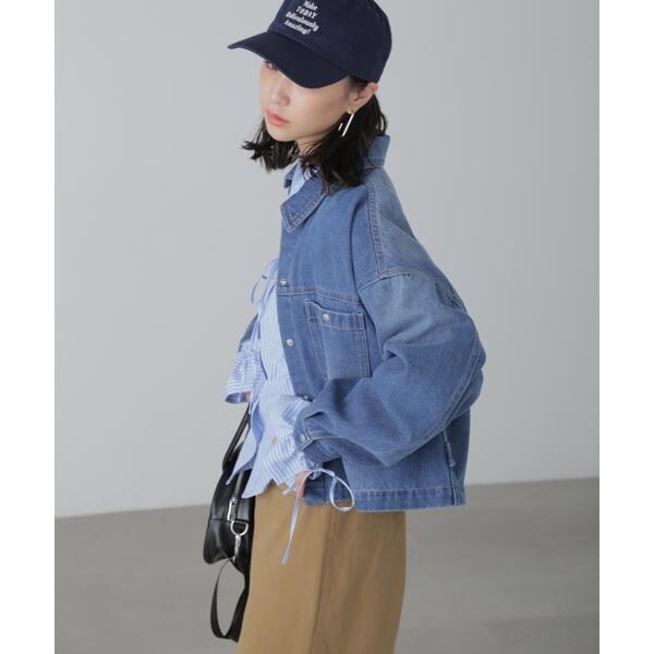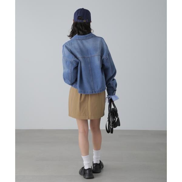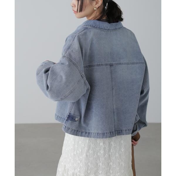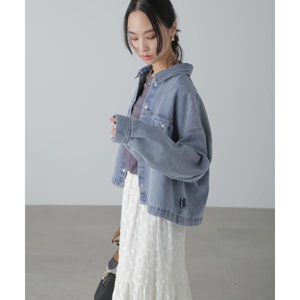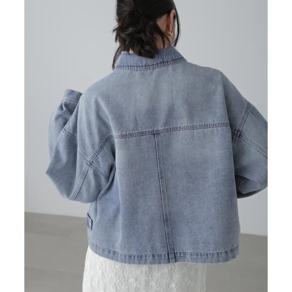 ワークテイストを盛り込んだスッキリとした印象のデニムブルゾン。リラックス感のあるワイドボディのショート丈で、合わせやすいバランスに仕上げています。キャミワンピースなどに羽織ったり、ボタンを全て留めてシャツのようにも着こなせます。スラックスと合わせたコーディネートもおすすめ。微配色ステッチがポイントのオフホワイト、FREE’S MART定番の「ストレートデニムパンツ オフホワイトカラー・店舗商品番131−4930005」とは同色糸なのでセットアップコーデもおススメです。※モデルの着用画像の場合、光の当たり具合により、実際の色味と異なって見えることがございます。色味は、商品単体の画像をご参照ください。