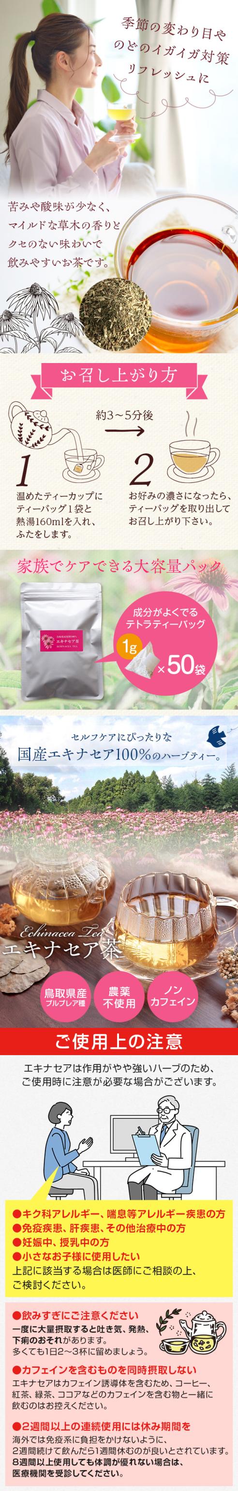 エキナセア茶 50袋入 鳥取県産原料100% エキナセア(プルプレア種)使用 農薬不使用 ティーバッグ 国産 無添加 健康茶 ハーブティー 送料無料 ネコポス(他商品との同梱不可)