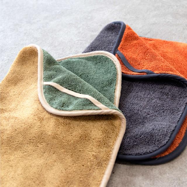 タオルとタオルの間に止水シートを挟むことで水の浸水をせき止め、両面使いを可能にしました。愛車の水滴を拭き上げできる超優秀な洗車クロスです。