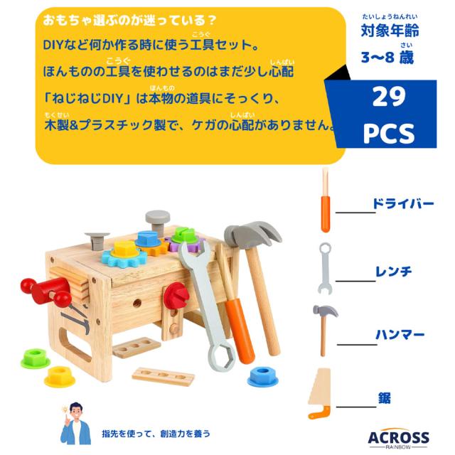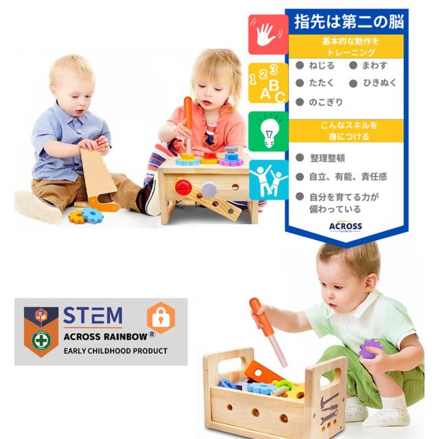Across Rainbow モンテッソーリ 玩具 クリスマスプレゼント子供 大工さん おもちゃ 男の子 玩具 工具おもちゃ 知育玩具 厚生労働省指定の検査機関材質済 B0CF9Z88DZ
