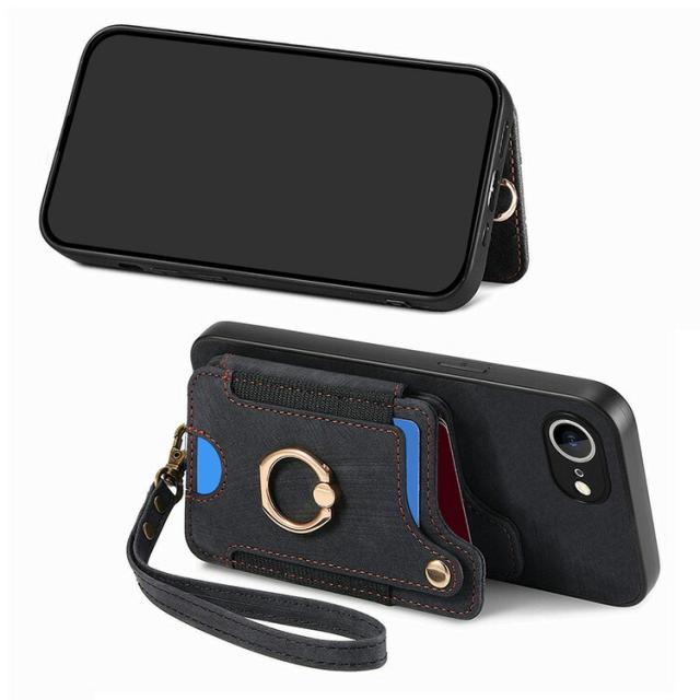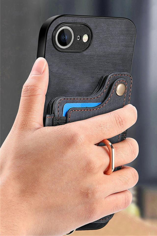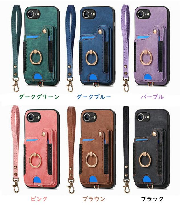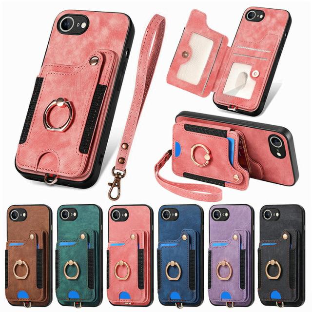 iPhone17e / iPhone16e ケース 耐衝撃 カバー ストラップ付き PUレザー カード収納 持ち手 リング付き 片手持ちに便利なハンドストラップ付き スタンド機能 Appleアップル アイフォン 17e / 16e おすすめ おしゃれ アイホン アイフォーン