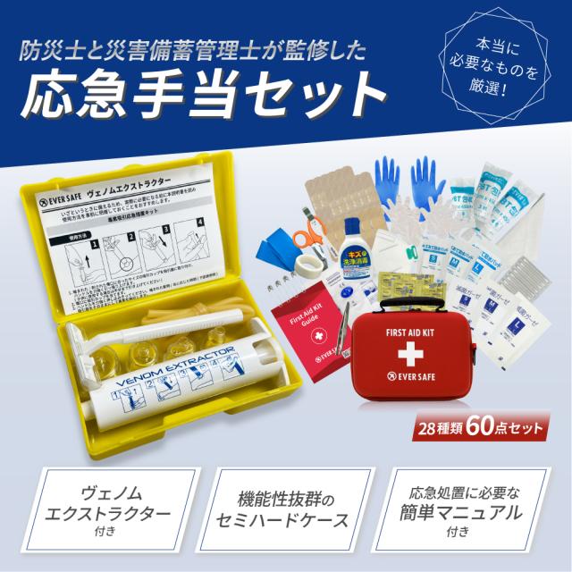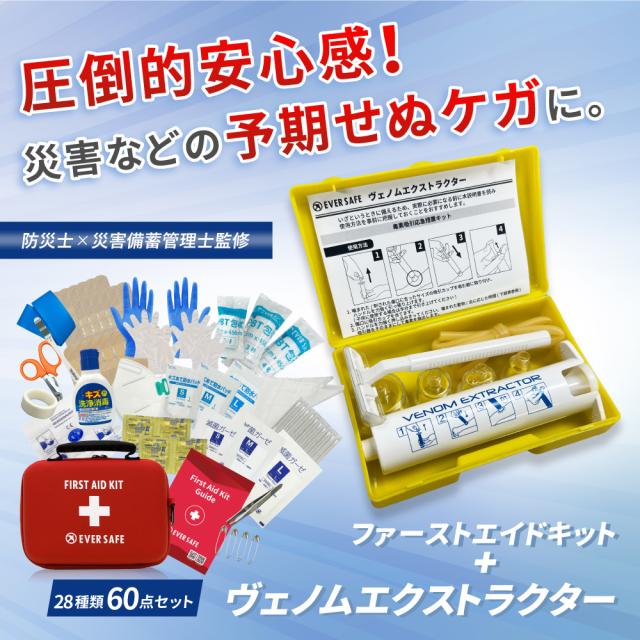 ファーストエイドキット Lサイズ ヴェノムエクストラクター 救急セット 救急箱 毒吸引器 防災グッズ 防災士監修 応急処置 ポイズンリムーバー EVERSAFE FAELV01