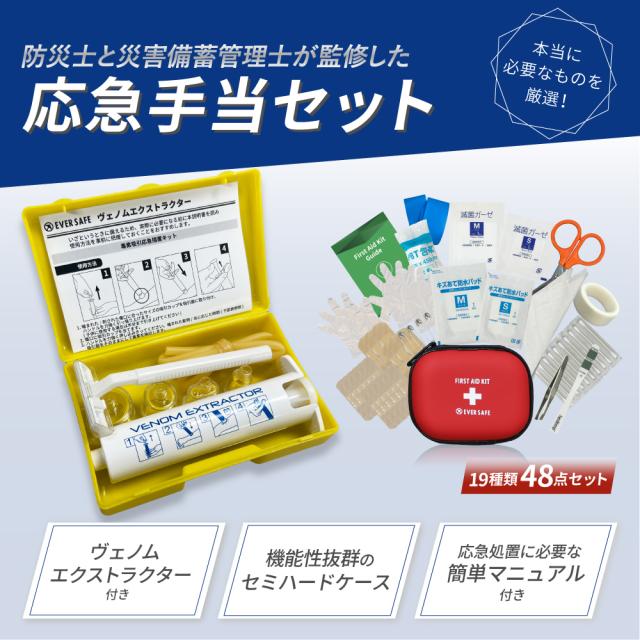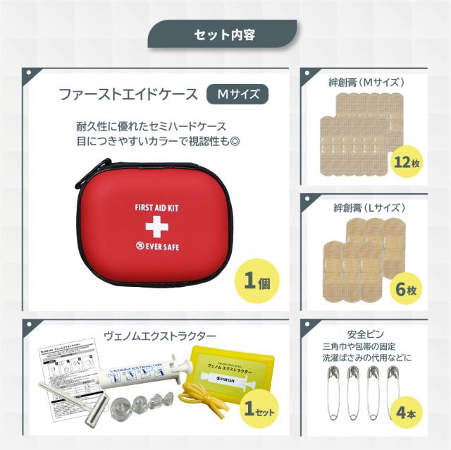 ファーストエイドキット Mサイズ ヴェノムエクストラクター 救急セット 救急箱 毒吸引器 防災グッズ 防災士監修 応急処置 ポイズンリムーバー EVERSAFE FAEMV01