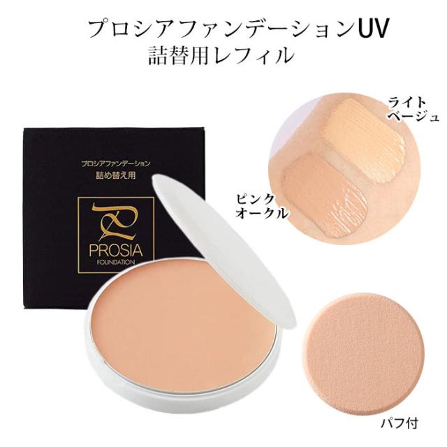 プロシアファンデーションUV 詰め替え レフィル パフ付 ピンクオークル/ライトベージュ 【正規品】 カバー力 SPF50+ PA++++ 50代 40代 シミ カバー 崩れにくい 厚くならない クリーム エマルジョン ファンデ