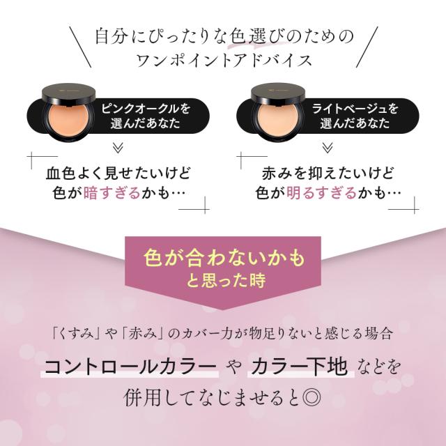 優れたカバー力で気になるシミやくすみを目立たなくして、きれいな肌を演出します。