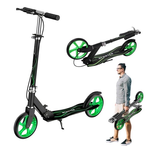 1台あればみんなで遊べる本体は軽量で頑丈なアルミボディを採用。デッキ面が滑り止め加工を施したことで、安心で快適な滑りをサポートします。身長の大きな方でも安定する大幅のデッキと、大人の手でも握りやすい長さとグリップ性が強いラバーグリップで乗り心地に特化した、移動に便利なキックボードです。 折り畳み式キックボード折りたたむことによってキックボード自体がコンパクトになるので、お部屋で保管できるので盗難の心配はなし。持ち運びはやすく、電車やバスに持ち込め、駐輪場などを気にしなく、通勤、通学、買い物などにおすすめします。女性でも楽々持ち運び 。自立可能な折りたたみ式スタンドを装備し、どこにでも立てられる。置き場に困りません。 4段階高さ調節75、93、98、103cmの4段階の高さに調整できます。子供用としても大人用としても、お子様の成長にあわせて乗り始めからキックボードを卒業するまで楽しく遊べます!幅広い年齢層に適用しています。自分用はもちろん、プレゼントとしても最適です。安心に快適な走りを体感し、何年にわたっても使用に耐えます。 2種類ブレーキフロントブレーキとリアのフットブレーキで高い制動機能を実現。とっさのブレーキにもしっかり対応。軽い力でもしっかりとブレーキを効かせる。雨天などの悪天候時でもブレーキ性能が落ちにくいキックボードです。大人の方も安心して乗って頂ける丈夫な作りで耐荷重は100kg。 快適な走行性ホイール直径は8インチ(20cm)で、一蹴りで速く俊敏に走り、少々のガタガタ道、凸凹道、砂利石でもスムーズに走れます。乗り心地が抜群です。年齢を選ばず子供から大人まで楽しめます。大人も満足の乗り心地キックスクーター。保証付きキックボードにつきましては、何か問題があれば、最初に当店に連絡してください。全力を尽くして問題を解決いたします。