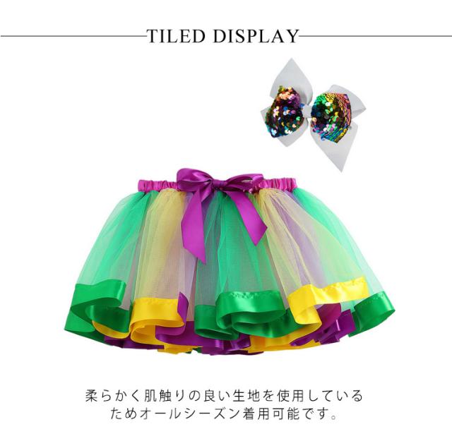 チュチュスカート リポン付き キッズ服 2点セット カラフル ふわふわ 子供服 チュールスカート パニエ 可愛い ダンスドレス ダンス衣装 文化祭 結婚式 卒園式 二次会 新入園 新入学 プリンセス お洒落 送料無料