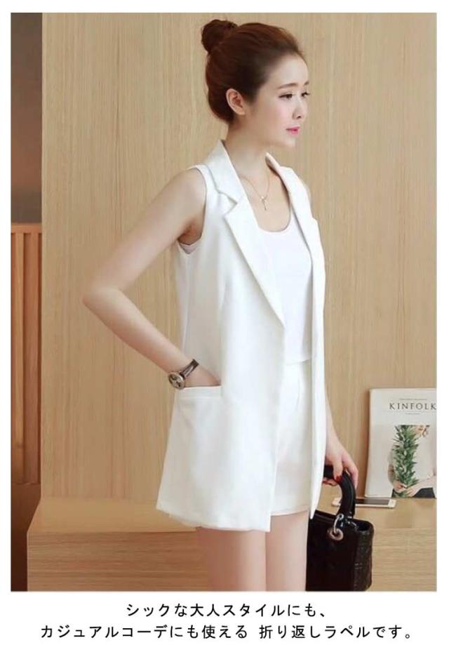 ロングベスト レディース サマー ベスト ジレ ベスト サマーベスト ノースリーブ トップス 羽織物 ロングジレ テーラードベスト ライトアウター Vネック スリム ゆったり 袖なし 重ね着 襟付き 黒 白 前開き レイヤード 大きいサイズ 大人女性 通勤 ビジネス OL 送料無料