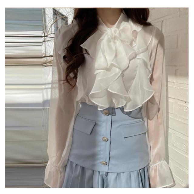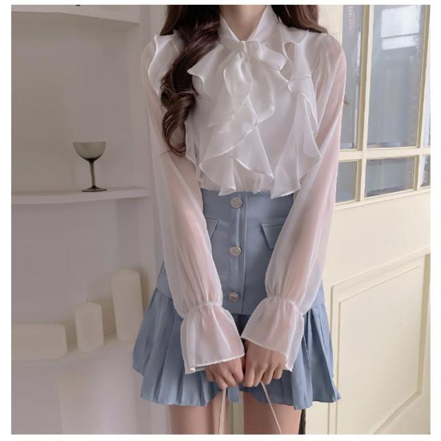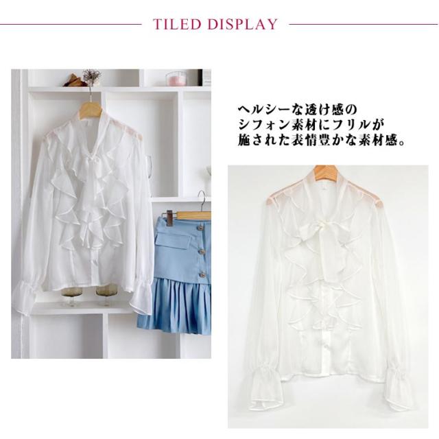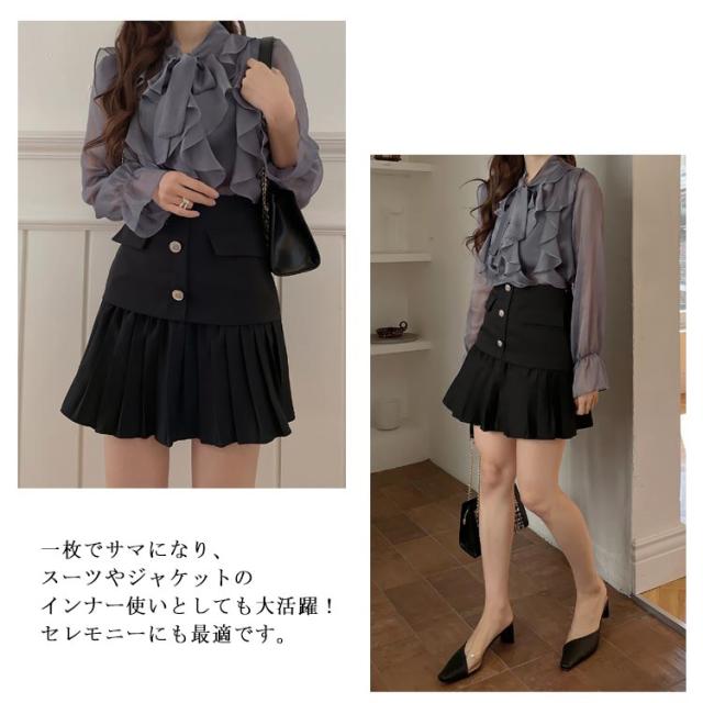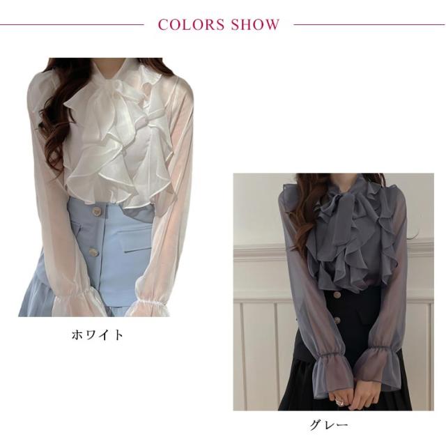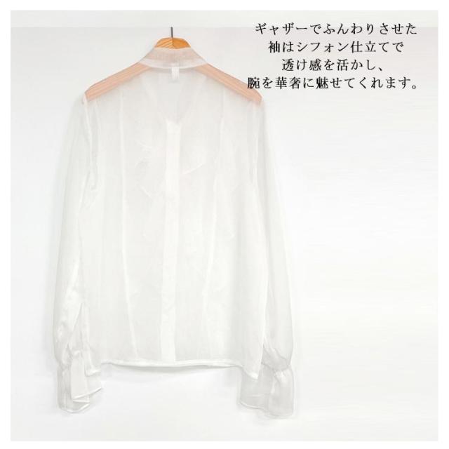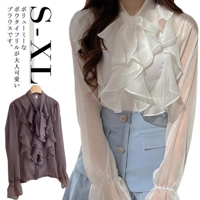 ブラウス きれいめ ボウタイ 春服 インナー フリル シャツ 長袖 フォーマル レディース 透け感 シースルー トップス 卒園式 卒業 無地 可愛い 母 入園式 入学式 シフォンブラウス スーツ 七五三 オフィス カジュアル 結婚式 送料無料
