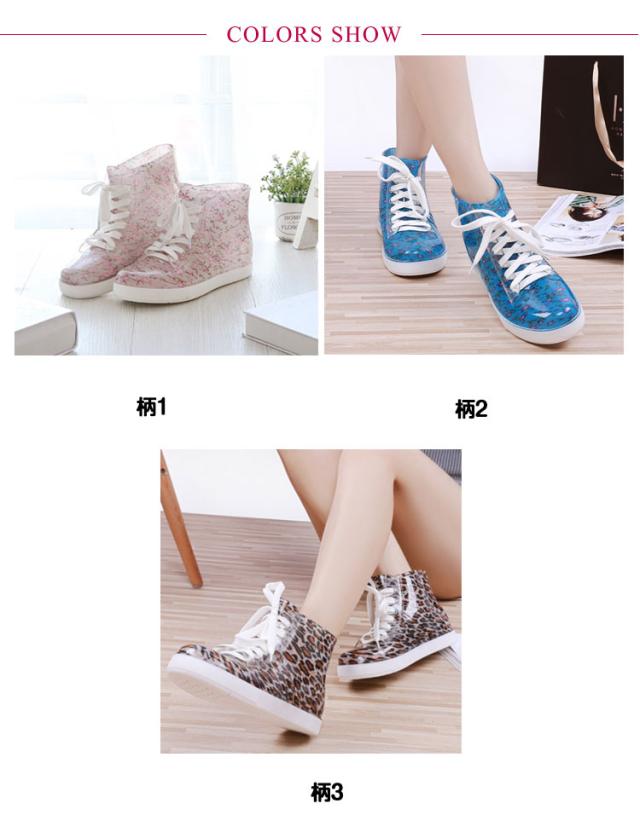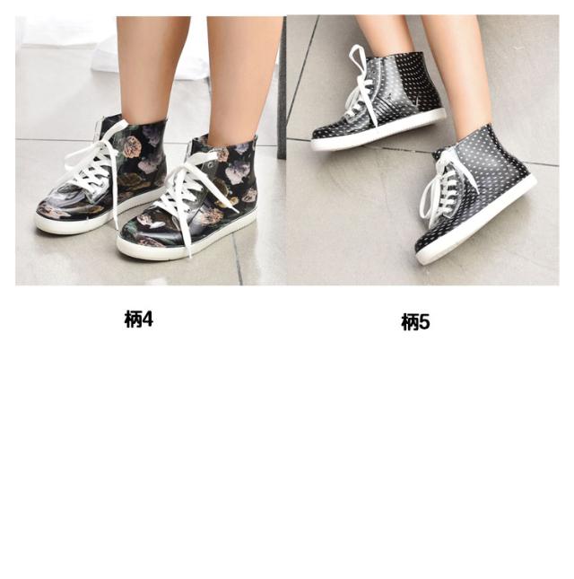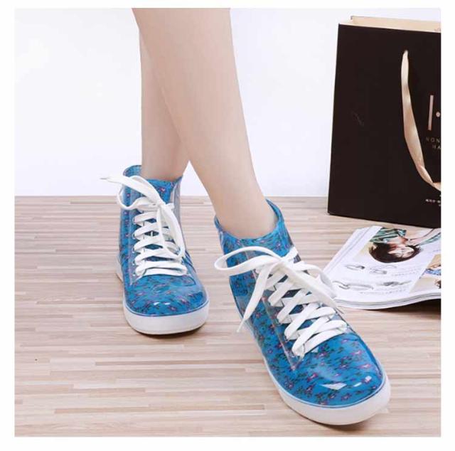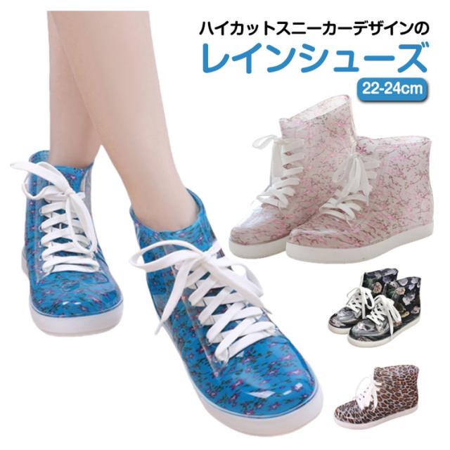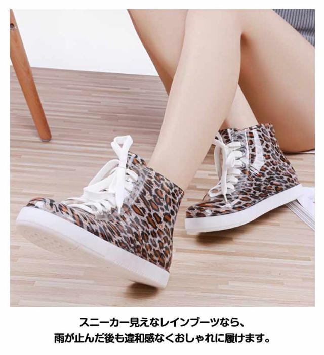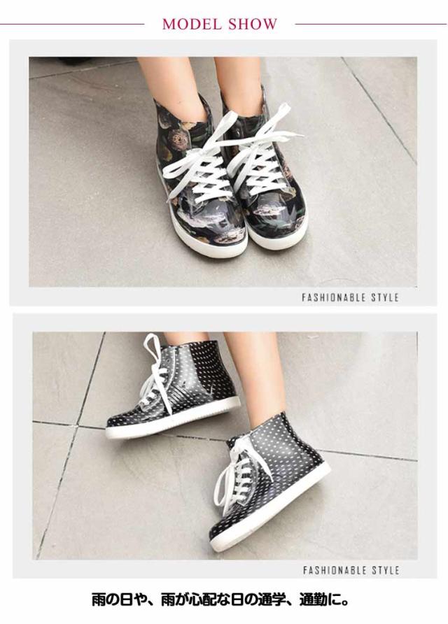 レインシューズ スニーカー レースアップ ハイカット レディース レインブーツ ショート 長靴 雨靴 防水 軽量 防滑 雨の日 レインスニーカー 疲れない 歩きやすい 滑らない 防水ブーツ 履きやすい 通学 通勤 おしゃれ ドット柄 花柄 ヒョウ柄 大人可愛い