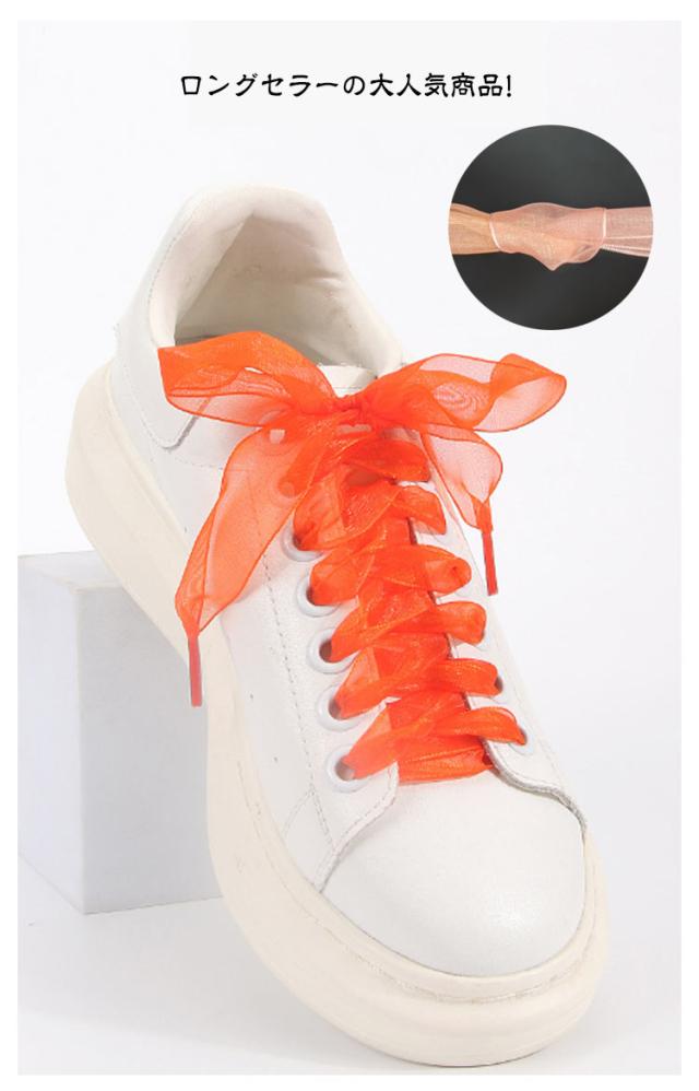 【長さ120cm 8本セット】 靴紐 全20色 おしゃれ リボン 靴ひも 白 紫 シューレース 太め 可愛い 幅広 長い 幅3.5cm 子供 女性 女の子 くつひも シアー 透明 レース レース紐 ガーリー かわいい 靴 スニーカー シューズ 紐 レディース