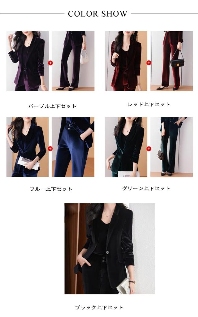 ベロアスーツ セットアップ 長袖 ジャケット ロングパンツ 上下セット レディース パンツ パンツスーツ 1つボタン フォーマルスーツ OLスーツ リクルートスーツ 就活スーツ ビジネス 女性用スーツ 通勤 テーパード 就職活動 就活 制服 事務服 オフィス 卒業式 成人式 発表会