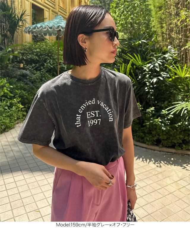 大人気インフルエンサー【春名亜美さんコラボ】選べるロゴプリントカットソー。シンプルながらも存在感のあるロゴプリントがコーデのアクセントに。程よくゆったりとしたシルエットでこなれた大人カジュアルな印象に仕上がります。一枚でもレイヤードでも着回し力抜群。デニムやワイドパンツと合わせてカジュアルに、ジャケットやカーディガンを羽織ればきれいめコーデにもぴったり◎【素材・サイズ感】程よい厚みの生地が身体のラインを拾いにくく、ストレスフリーな着心地を実現。洗濯機で洗えるのでデイリー使いにもぴったりです。気分やスタイルに合わせて自分らしいスタイルを楽しめる万能アイテムです。※キャンセル/変更不可※※お届けまでの日程について