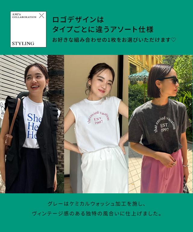春新作 [ 春名亜美さんコラボ ]選べるロゴプリントカットソー C7359 入荷済 レディース AMI あみ 20代 30代 40代 きれいめ 上品 ママ プライベート 休日 おでかけ かわいい 可愛い 着映え インフルエンサー トラベル 旅行 リゾート バカ