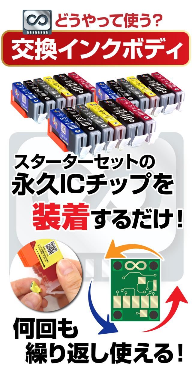 商品の特性:繰り返し使える永久ICチップ専用の交換用インクボディです。 別途、永久ICチップ付きスターターセットが必要になります。 本製品だけでは、ご使用になれませんので予めご了承ください。