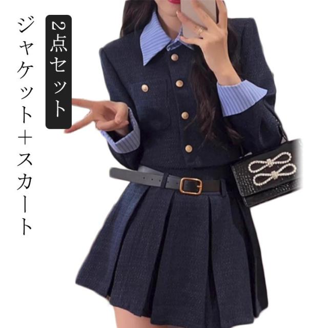 レディース 長袖 2点セット 大きいサイズ カジュアル コスプレ衣装 送料無料 ブレザー 上下セット 秋冬春 上下セット 黒 ブラック ジャケット ブレザー+スカート コスチューム衣装 制服 プリーツスカート 韓国風 スーツ 仮装 卒業式 学園祭 JK制服