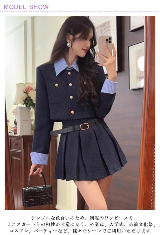 | シンプルな色合いのため、制服のワンピースやミニスカートとの相性が非常に良く、卒業式、入学式、公演文化祭、コスプレ、パーティーなど、様々なシーンでご利用いただけます。 しっかりした生地がいいのと縫製もしつかりしています。確かな縫製技術を持った工場で丁寧に仕上げています 1枚でもさらりと着こなして頂けます。エレガントなデザインで、大人の女性の魅力を最大限に引き立てます。 日常着や学校制服としてはもちろん、ハロウィンの仮装や、ダンスの衣装にもおすすめです。 【セット内容】ジャケット+スカート | |