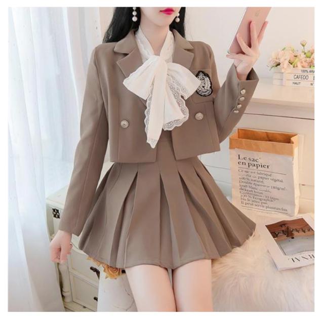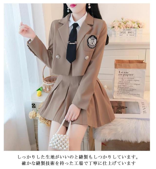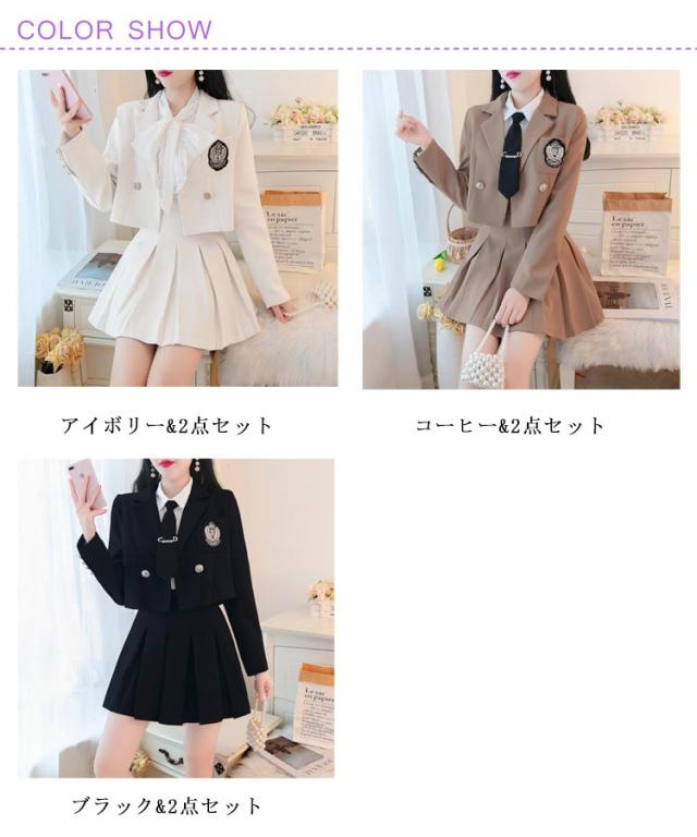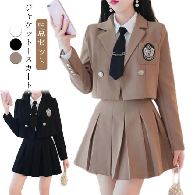 大きいサイズ 長袖 レディース ジャケット 上下セット コスプレ衣装 カジュアル スカートスーツ 2点セット 秋冬春 ブレザー 黒 上下セット 韓国風 ブレザー+スカート コスチューム衣装 送料無料 プリーツスカート ブラック スーツ 仮装 卒業式 学園祭 JK制服