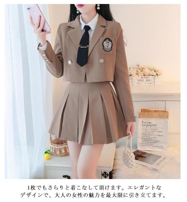| シンプルな色合いのため、制服のワンピースやミニスカートとの相性が非常に良く、卒業式、入学式、公演文化祭、コスプレ、パーティーなど、様々なシーンでご利用いただけます。 しっかりした生地がいいのと縫製もしつかりしています。確かな縫製技術を持った工場で丁寧に仕上げています 1枚でもさらりと着こなして頂けます。エレガントなデザインで、大人の女性の魅力を最大限に引き立てます。 日常着や学校制服としてはもちろん、ハロウィンの仮装や、ダンスの衣装にもおすすめです。 【セット内容】ジャケット+スカート | |