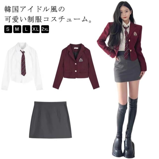 コスプレ衣装 3点セット パンツ 韓国 上下セット 女の子 制服 入学式 長袖 女子高校生 白シャツ タイトスカート JK制服 高校生 中学生 学生服 女の子 卒園式 スクール ネクタイ コスチューム 仮装 おしゃれ S M L XL 2XL