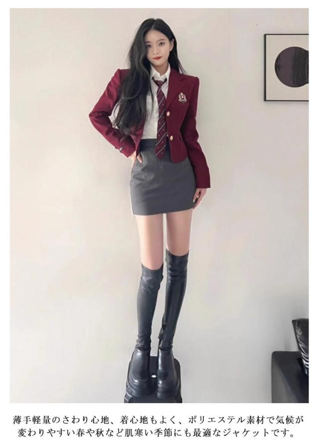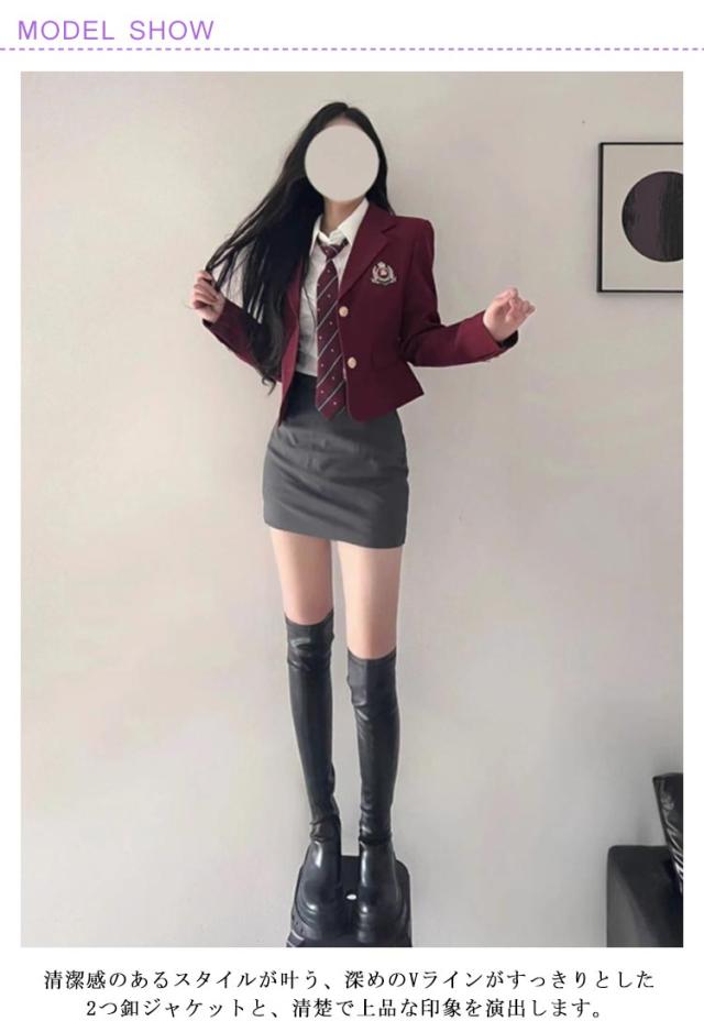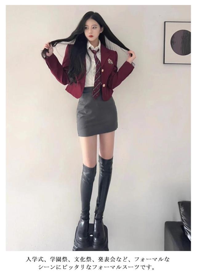 | 韓国アイドル風の可愛い制服コスチューム。 清潔感のあるスタイルが叶う、深めのVラインがすっきりとした2つ釦ジャケットと、清楚で上品な印象を演出します。 薄手軽量のさわり心地、着心地もよく、ポリエステル素材で気候が変わりやすい春や秋など肌寒い季節にも最適なジャケットです。 入学式、学園祭、文化祭、発表会など、フォーマルなシーンにピッタリなフォーマルスーツです。 【セット内容】ジャケット+シャツ+スカート+ネクタイ | |
